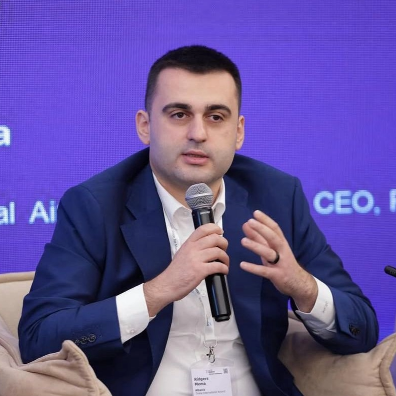 Ridgers Mema, born in 1992 in Durrës, is Head of Business Development at Kastrati Group and Managing Director of Tirana International Airport. He focuses on driving the group’s